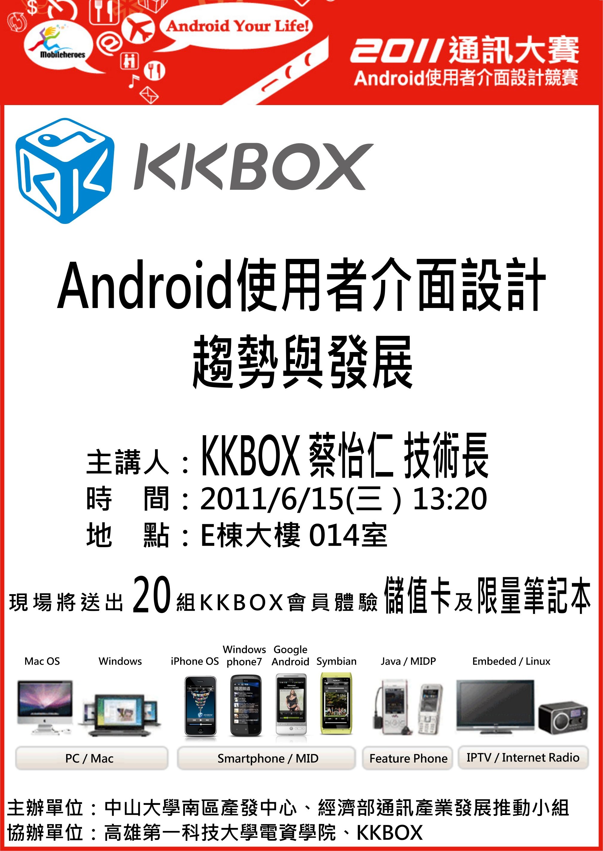 一、講座主題:【2011通訊大賽暨Android使用者介面設計趨勢與發展】