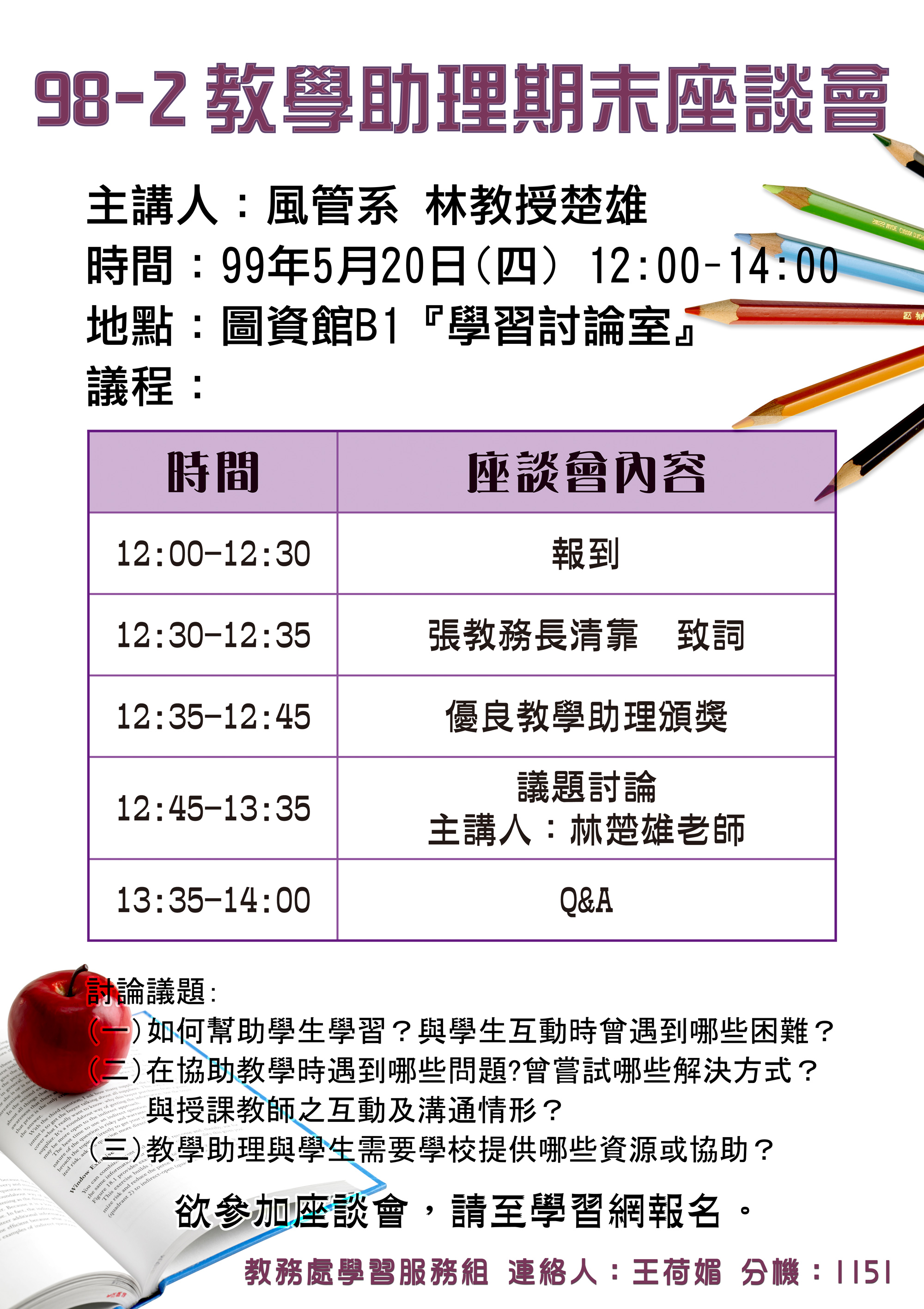 12:35-12 : 45 優良教學助理頒獎 張教務長清靠
